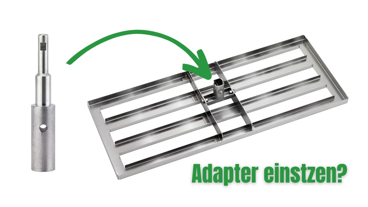 Rasenrakel 💡 Een steeladapter is meestal niet nodig, omdat de hark en de landschapshark ontworpen zijn voor elke in de handel verkrijgbare standaard steel met een diameter van 2,8 cm (hout, glasvezel, enz.). De steel moet echter minstens 180-200 cm lang zijn om comfortabel te kunnen werken en je rug te beschermen.